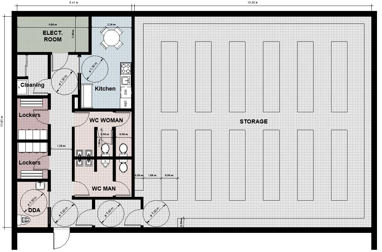Es el área destinada las actividades de comida y ocio del personal. Debe tener una nevera, un microondas, un fregadero, una fuente de agua potable, correcta iluminación y ventilación y una mesa y sillas para comer, también puede colocarse un sofá. El Staff room debe ser accesible para personas con discapacidad, por lo cual debe poder inscribirse un cÍrculo de 1500mm de diámetro antes y después de la puerta de acceso y no debe interferir con el radio de apertura de la puerta. Si la puerta es batiente debe abrir en el sentido de la evacuación.
